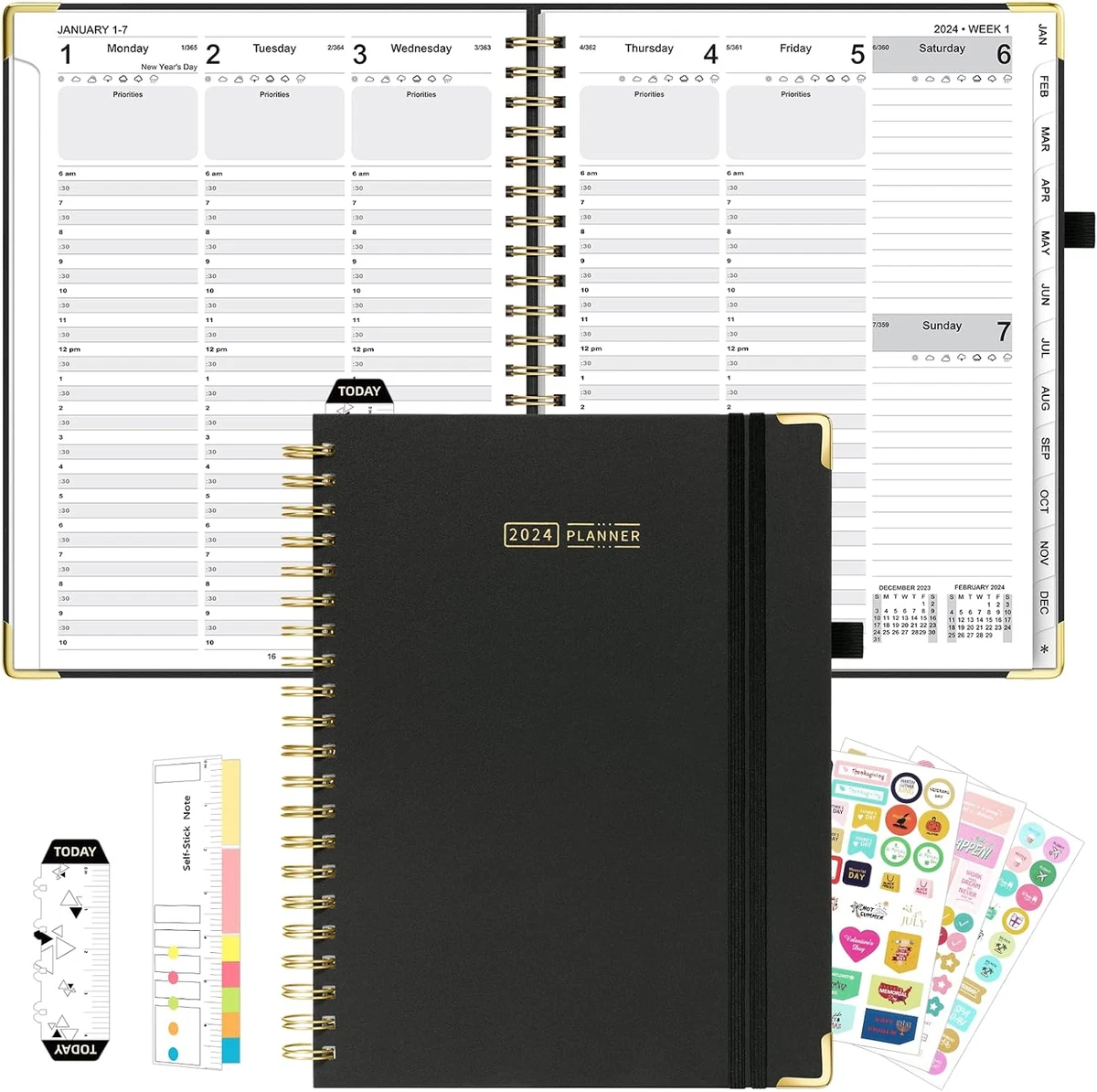 Source : www.amazon.comPlanner 2024 2025 Calendar 12 Month Weekly Spiral Bound Daily 8.5